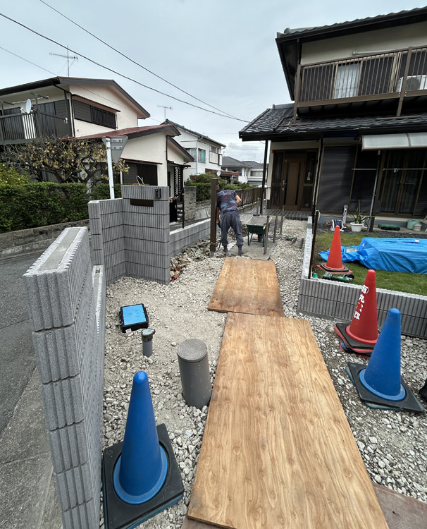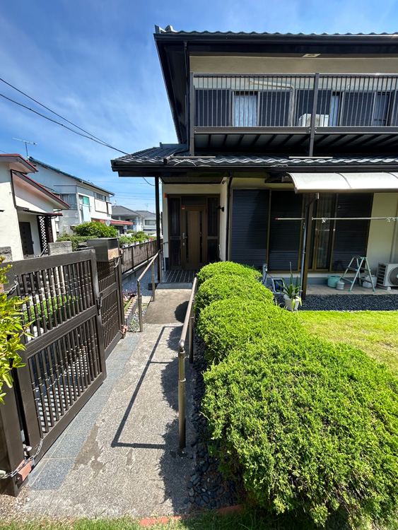 以前、室内の手すり取付工事をご依頼いただいたK様から、外構部分を車椅子でも安心して通行できるようにしたいというご相談を受け、バリアフリー対応の外構改修工事を行いました。