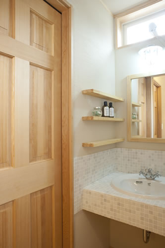 ご両親世帯のご夫婦は、2人ともモノづくりが大好き。なんでも自分達で作ってしまうような、そんなおふたりでした。だから、職人の技に憧れるとか感動するとか、ともかく心打たれる部分があったのかもしれません。初めにクロスだった壁は、職人のコテ使いをみて、珪藻土に一部変更。前の家に使われていた柱や欄間を新しい家にも、一部飾りとして取り入れたことも、物への愛着と職人技への敬意のあらわれのような気がしてなりません。