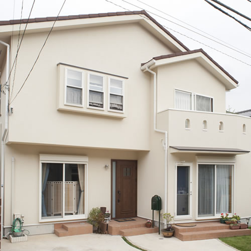 娘さんご夫婦は、インテリアへの関心が高く、この家のために新しく買ったもの、そして元々持っていたもの、新しい物から古くて味のあるものまで、素敵に飾り付けられるような家になりました。プロバンス風のどこかしらヨーロッパの香りのする外観も、娘さんのこだわりのひとつ。