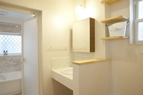 今回は立地の良さからソーラーも設置、床暖房にはSRC基礎を採用しているので、リビングはもちろんタイル敷のキッチンや洗面室も冬暖かく夏涼しく過ごせます。