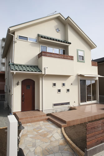 海を望む敷地に建てられた緑の瓦が印象的な可愛らしいお家です。