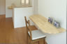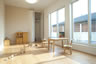 こだわりの白い無垢建具・キッチンで揃えた広いLDKにはご実家から運ばれて来るグランドピアノのためのスペースを用意してオーニングのある広いタイル敷きのテラスへと続きます。