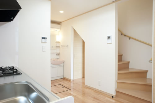 80代のお施主様ご夫婦二人のためのお家が出来ました。 小さくても全てに手が行き届き、自分達で手入れを楽しみながら暮らす。 そんなご要望を叶えるために、いつものtsumikiテイストとは少し違いますが、 丁寧に作った17坪の家です。 床は桜無垢フローリング、水廻りもピンクで明るく、外壁は弾性が強く ひび割れにくいワンランク上の吹付塗料で深みのあるグレーに仕上げています。