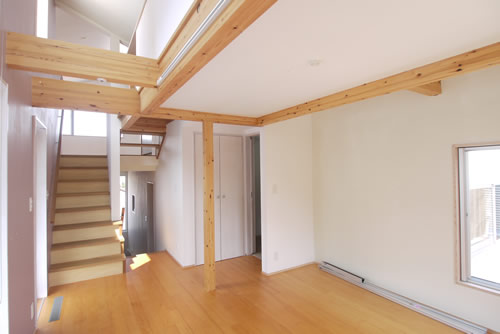 ナチュラルな空間を作ることにこだわったS邸、壁には珪藻土やほたてをS様自ら施工し、更に床には無垢のパイン材やレッドシダーを使るなど、体が触れる部分には自然素材を使用しました。だから、リビングや居室を歩くと、その肌触りはとても心地よく、壁の自然素材のおかげか室内の空気はそれて澄んでいるように感じられます。