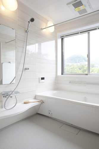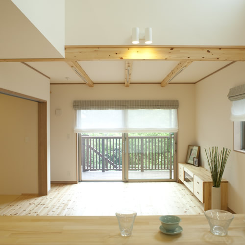 何といっても一番素晴らしいのは、LDKの大きな窓続きのウッドデッキから眺める緑。1.25坪のお風呂からもその眺望は楽しめます。