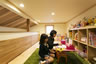 木がお好きなご夫妻が2階リビングに選んだ床材はイロコというアフリカ原産種で、深いオレンジ味のある色へ経年変化していきます。