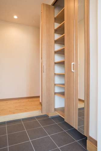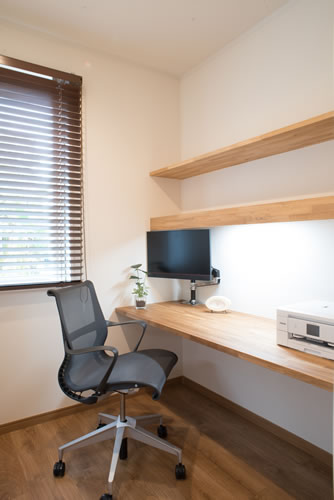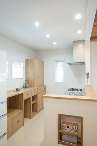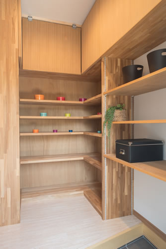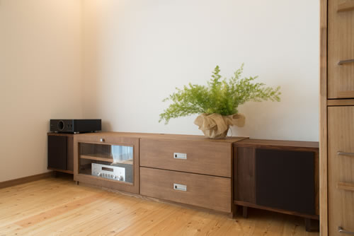 家具も食器棚・本棚に加えて写真を立てられるアルバム収納やウォークインクロゼット内を左右にスライドする鏡等々、作り付けのものを数多く作成し無駄なく統一感のある家が出来上がりました。