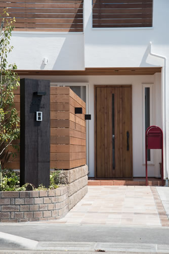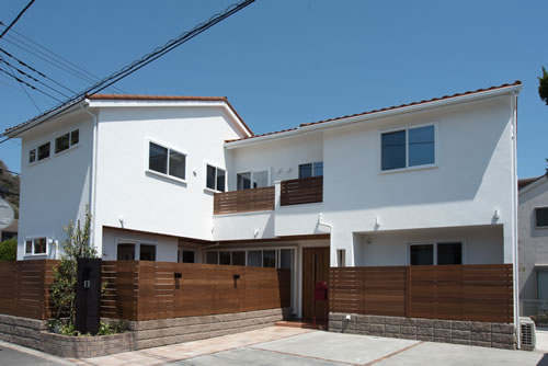 広い間口の敷地を生かして、玄関を中心に両翼を広げたような間取りのお家です。南欧風の白壁にテラコッタ色の屋根、玄関土間から続くホールもタイル敷きで仕上げて、統一された雰囲気でお客様をお迎えします。