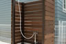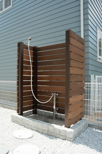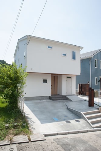 1階の玄関ホールから土間のつながるシューズクローク兼サーフボード・自転車置き場には欄間付きの専用出入口を設け外シャワーからの動線と明るさを確保しています。