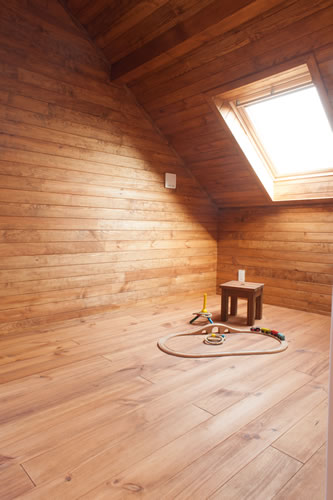 天井板貼;吹抜レッドシダー 子供室ボルドーパイン