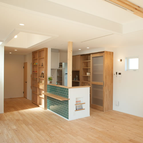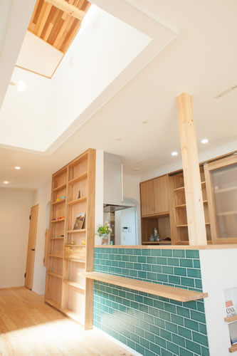SRC基礎を採用しているため、吹抜がある事で暖かい空気が2階へあがり、家全体をふんわり温めています。