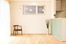 床材は無垢の「あづみの松」、造作家具等はそれに合わせて赤松材を使用しました。