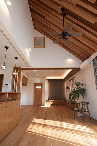 吹抜け天井、一部壁:レッドシダー材