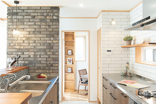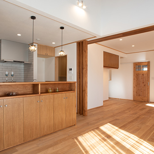 弊社とのお付き合いは15年以上。ご親戚が弊社でお家を建てられたご縁で、以前住んでおられたお家のリフォームをさせて頂いていましたが、この度お気に入りの土地を見つけられ住み替えを決意、弊社に工事を任せて頂くことになりました。木とタイルを要所要所に使い温もりのある室内に仕上がっています。