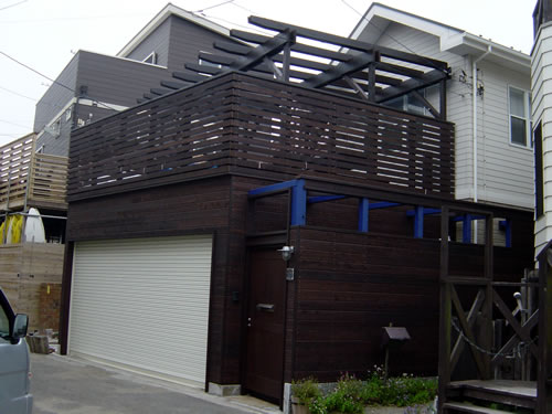 海まで歩いて1分という立地で塩害に悩まれたいたご主人は引っ越すことも真剣に考えたそうですが、塩害などにも耐久性を発揮するレッドシダーをガレージの材料として使うことでそれらの問題を解決しました。