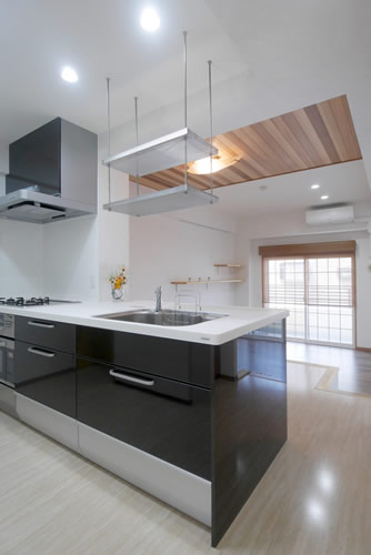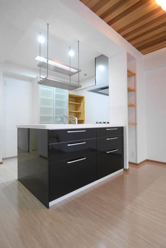 N様より頂いた要望は、これまで沢山海外もご覧になって来た経験から、「ただ広いだけでなく、空間に変化をもたせた、間仕切りの無い明るいLDKにしたい」という事。