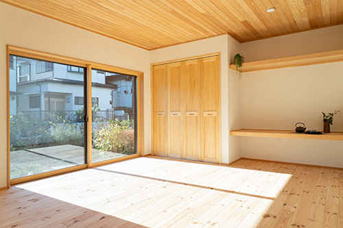 床:無垢赤松フローリング