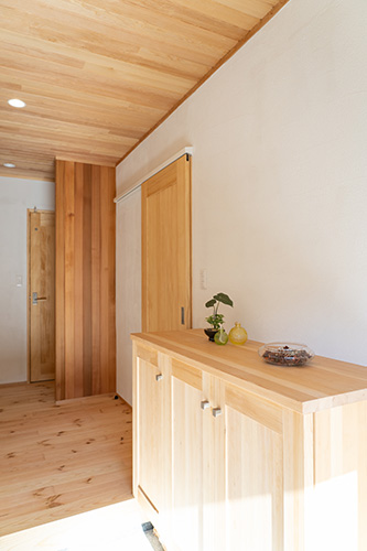 木を存分に使用し自然素材に囲まれた、思わず深呼吸したくなるような気持ち良い空間に仕上げています。