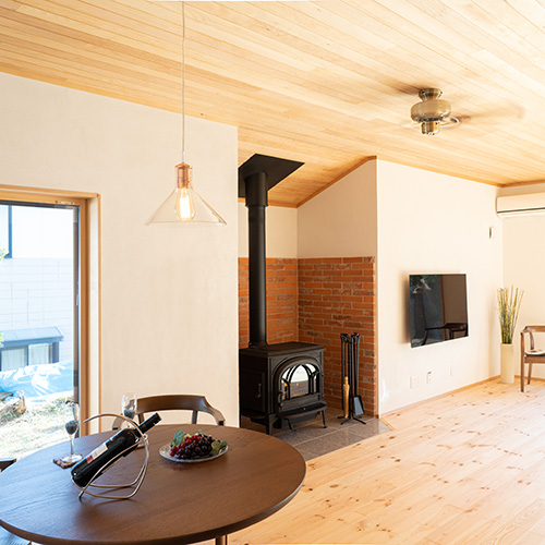 LDKにはお施主様念願の薪ストーブを新設。薪ストーブでお料理するのも楽しみになりそうです。