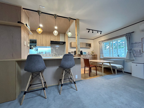 お気に入りの照明器具をカウンターやダイニング上に取り付け、カフェのような雰囲気に仕上がりました。