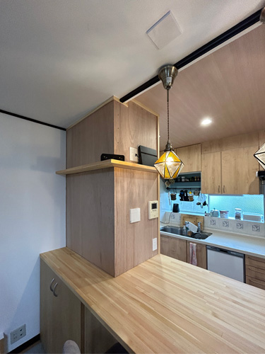 今後、DIY好きの奥様は、引き渡し後にベニヤ仕上げのカウンター横にタイルを貼る計画も。どんなキッチンに進化していくのか、これからもとても楽しみです。
