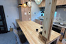 既存の独立キッチンの壁を撤去するために、構造的に問題がないかを天井を開けて確認し、構造上残す必要がある柱は、せっかくなのでそれをキッチンのデザインの一部として活用しました。柱は表面を丁寧に磨き、自然塗料のオスモで仕上げを行い豊かな表情を作りだしました。
