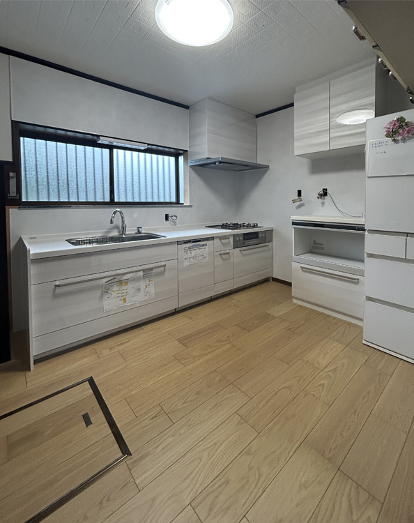 キッチンは新しい設備に交換し、使い勝手と安全性を向上。床をフラットにしたことでキッチンへの移動もスムーズになり、毎日の家事が快適な空間になりました。